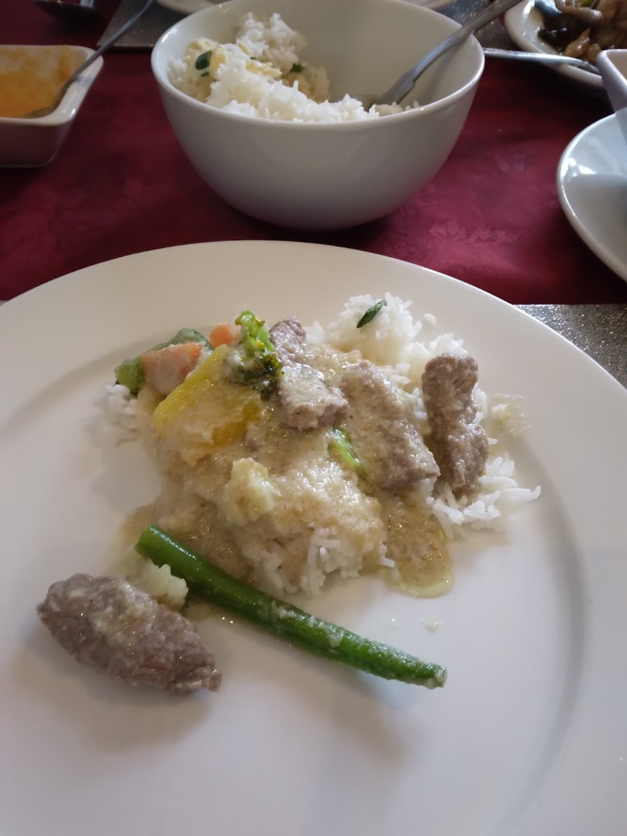 Arrived in Broadstairs to catch up with old friends, but in the mean time we needed something to eat. In all those years we lived in kent we never went here, but meant to, so we did and we weren't disappointed. It's bring your own drills, we didn't just had water. We ordered the chicken satay for a nibble and then a green beef curry & pork with peppers and spring onions. Very very nice. Would most definitely return when we return to visit . The staff very polite and friendly. I was so hungry I nearly done my normal trick and forgot the photos